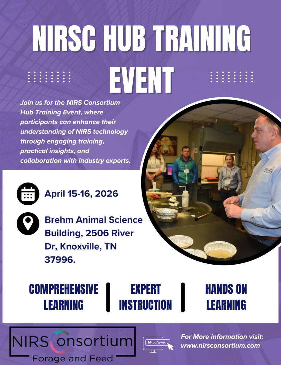 The upcoming NIRSC Hub Training Event, taking place April 15–16, 2026 at the University of Tennessee, will bring together industry professionals, researchers, and laboratory specialists for hands-on learning and collaboration in near-infrared spectroscopy (NIRS). Hosted by the NIRS Consortium, this training will focus on advancing technical skills, improving calibration accuracy, and strengthening the standardization of forage and feed analysis across the industry. Attendees can expect interactive sessions, expert-led instruction, and valuable networking opportunities, all designed to enhance the application and understanding of NIRS technology in real-world settings.
